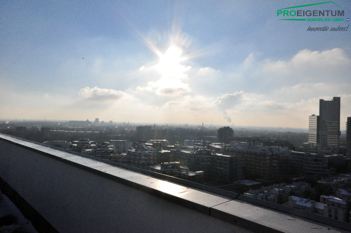 Die Sommermonate genießen Sie auf der Dachterrasse im 16. OG mit atemberaubendem Blick in die Alpen und auf die Stadt.