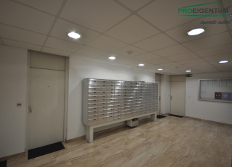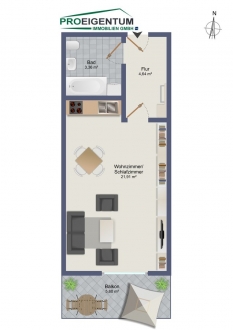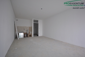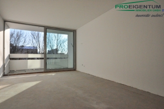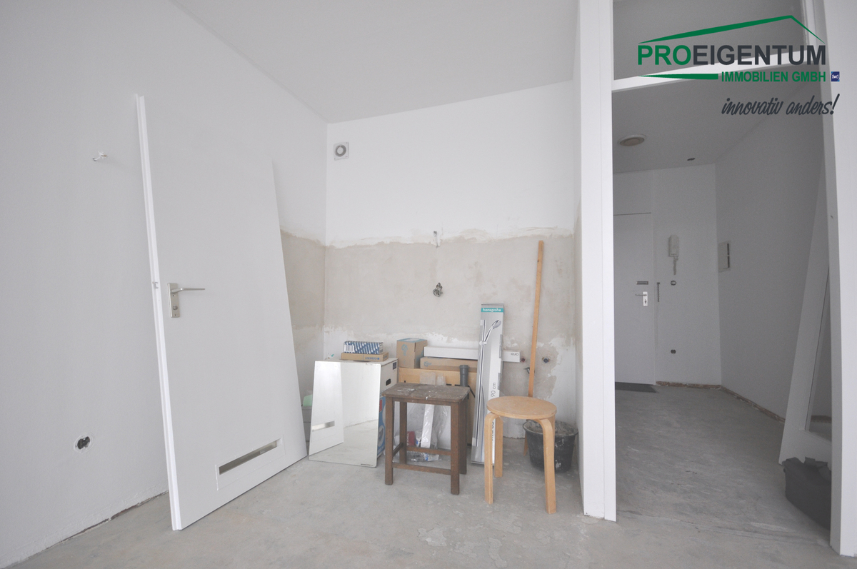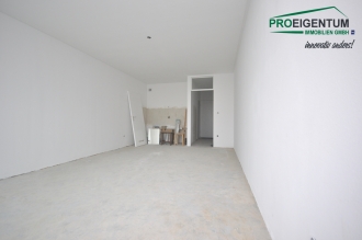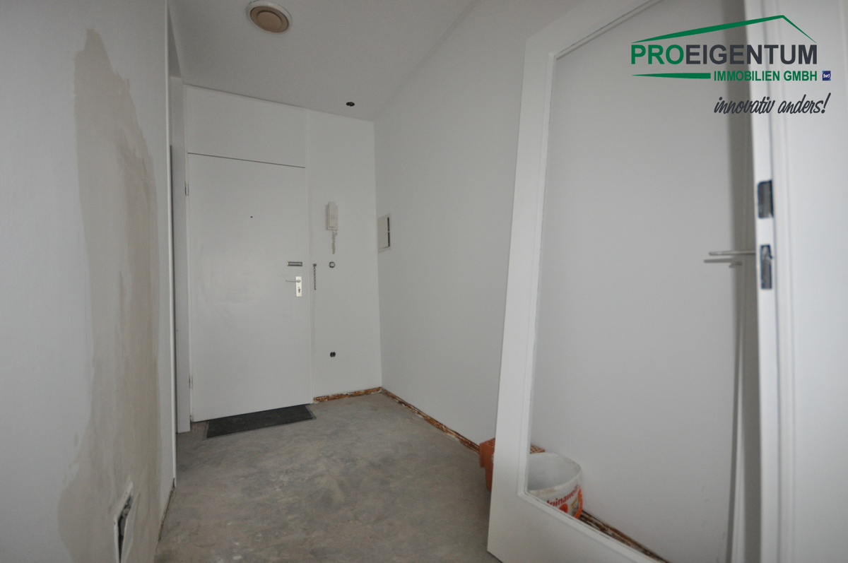 Vom Aufzug kommend betritt man die Wohnung durch einen Flur, welcher über ausreichend Platz für einen großen Einbauschrank verfügt. Angrenzend befindet sich der sonnige Wohn- und Schlafbereich, der durch eine separate Türe abgetrennt ist.