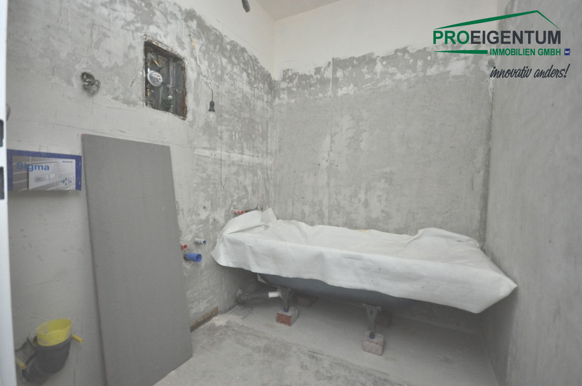 Das Bad / WC verfügt derzeit über eine Badewanne; lässt sich jedoch beim Ausbau nach den eigenen Wünschen gestalten.